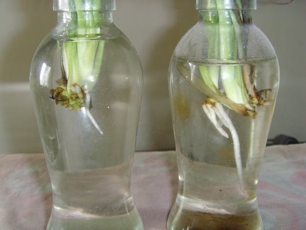 今天小草又给我带来了惊喜,原来只有一条长根的小草,终于又冒出了另一条长根,一株吊兰入土栽培至少要有两条稍长的根才有生存下去比较保险,所以原来只有一条根的小草生命是没有保障的,只能呆在水里去成长。这次我很高兴,小草果然有很顽强的毅力去成长,果然敢于去打破人们认为不可能的事情。