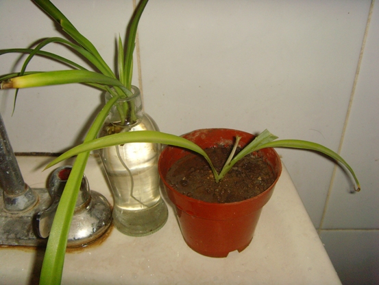 “它”算是棵吊兰吧,我习惯叫它小草。因为在很多人眼里,它长得一点不像吊兰,更加像草,所以即使是吊兰的身体,却也要承受小草的命运。一株小草,当我拿在手里的那一刻,这株兰草已经脱离了把它养育大的花盆,脱离了供给给自己营养的枝茎,这一刻这株小草成了走向大自然的一个独立生命,就像一个年轻人走向了社会一样。社会对人是残酷的,大自然对小草是否也是残酷的呢?因为它本是一颗品种最不起眼的吊兰。