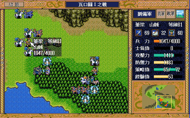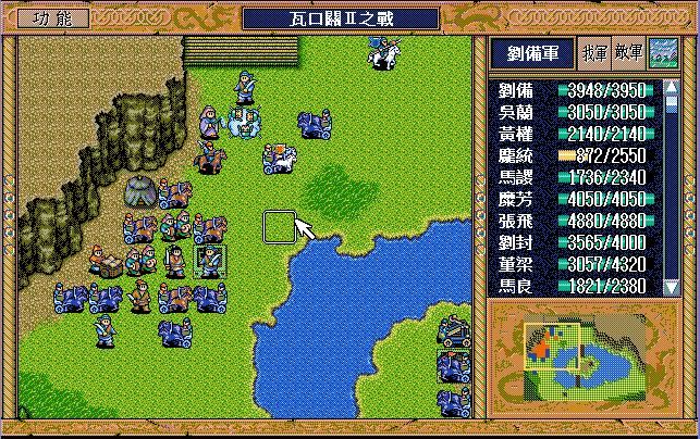 最后策略有剩余,前期如果刘辟多补充策略,可以晚点变阵,董梁可以多反击几次,但这关实在是sl的吐血了,经常要控制2-3个敌军走位,到特定位置援助特定的人