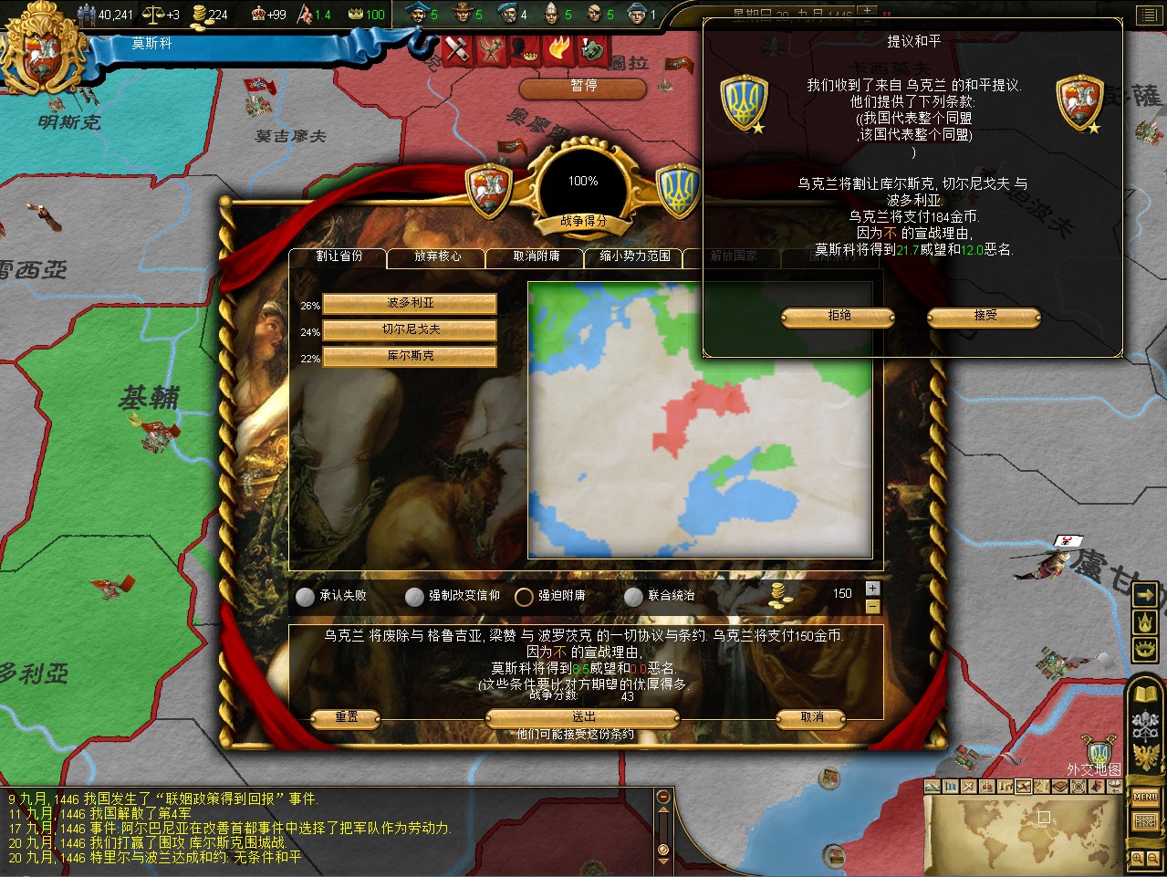 乌克兰的地也没借口,虽然它要让给我,但是那12点BB让我很纠结。还是收钱吧。