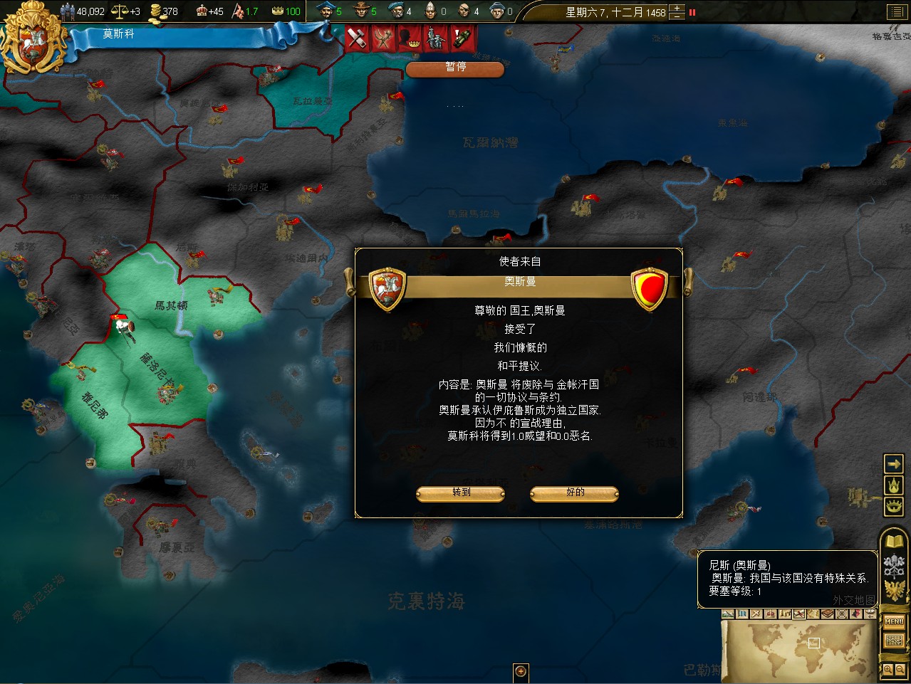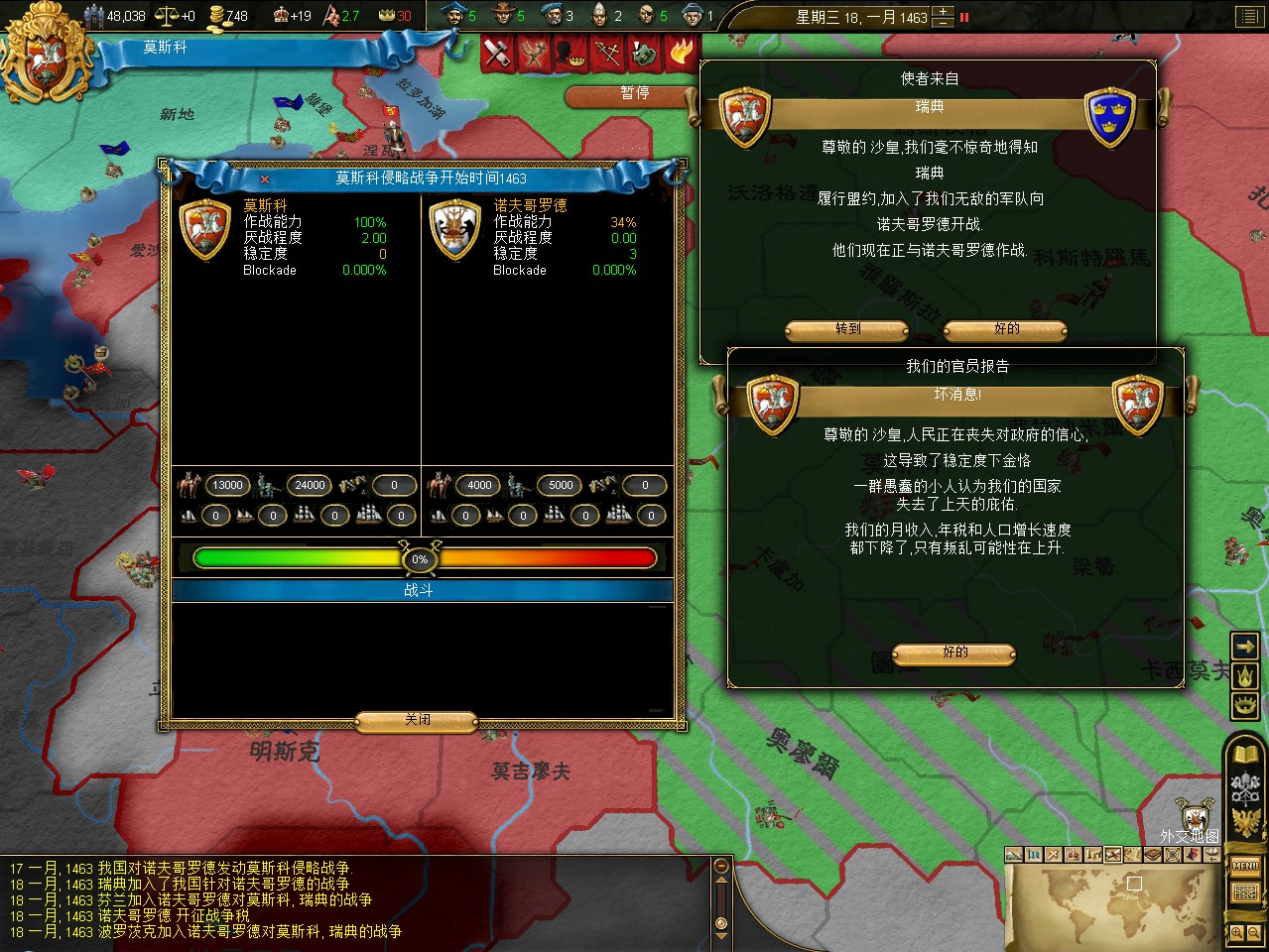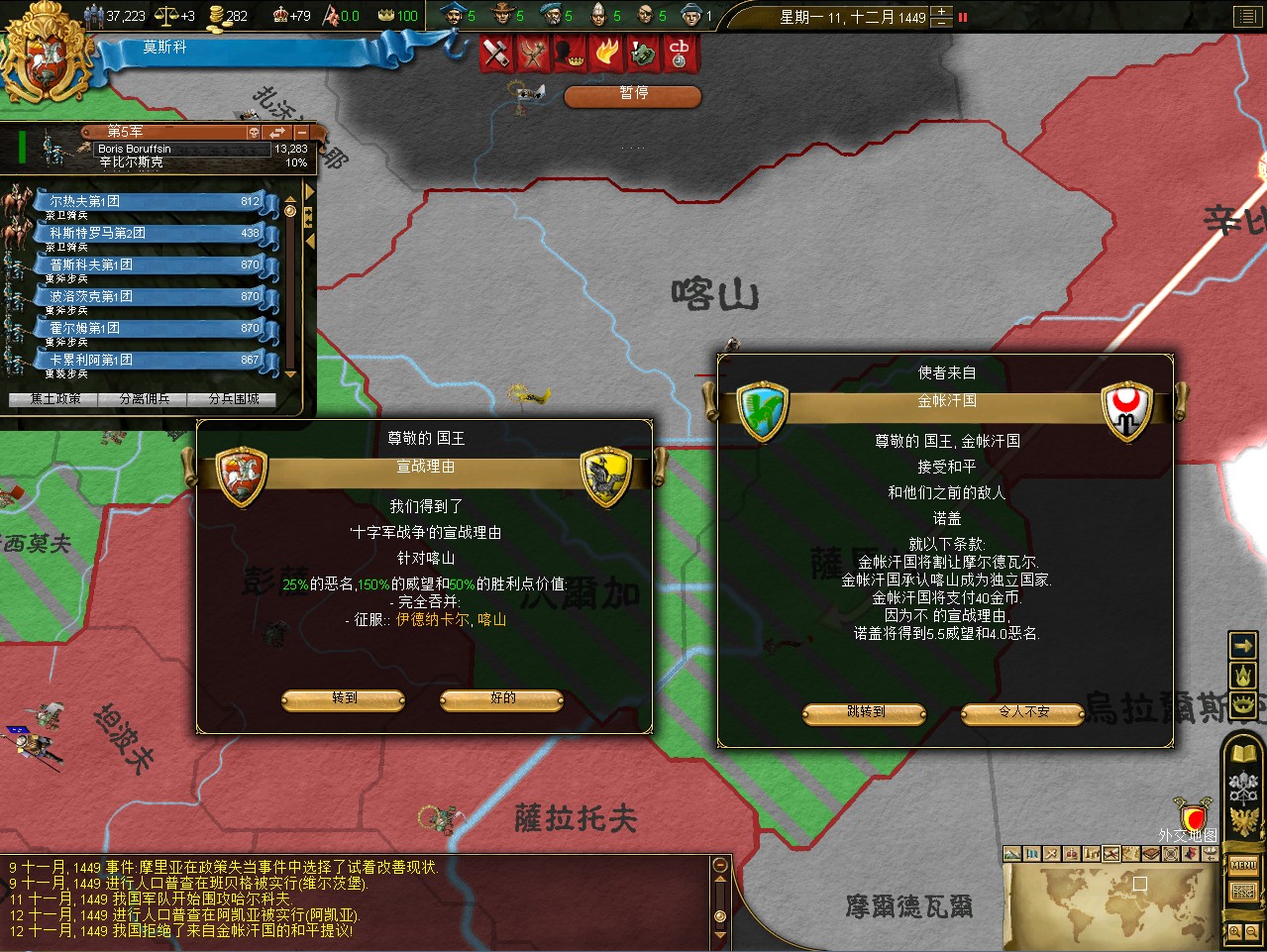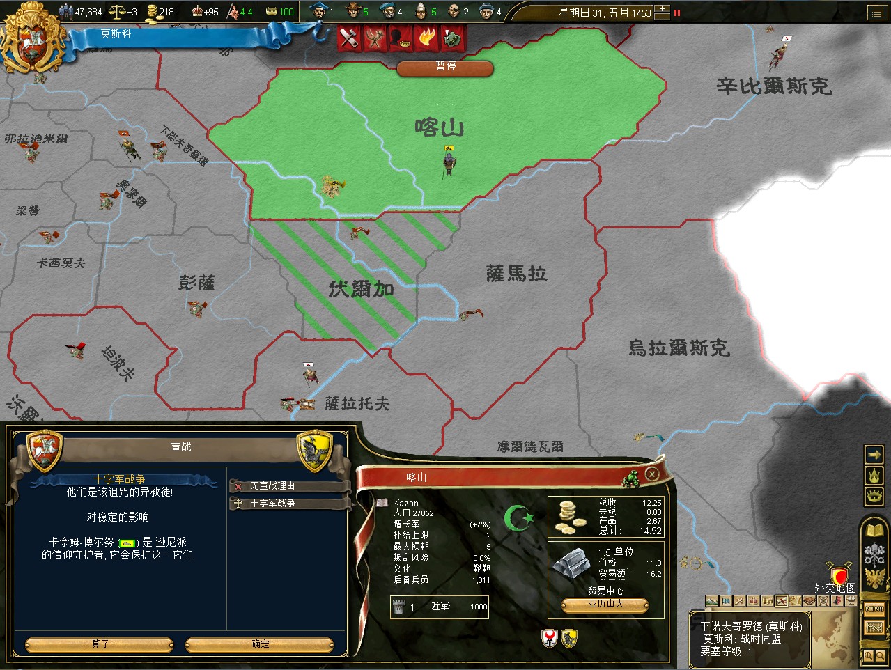 杯具啊,档出问题了,虽然有任务,但是刷不出附庸小诺的宣战理由。没办法,只能强宣了。