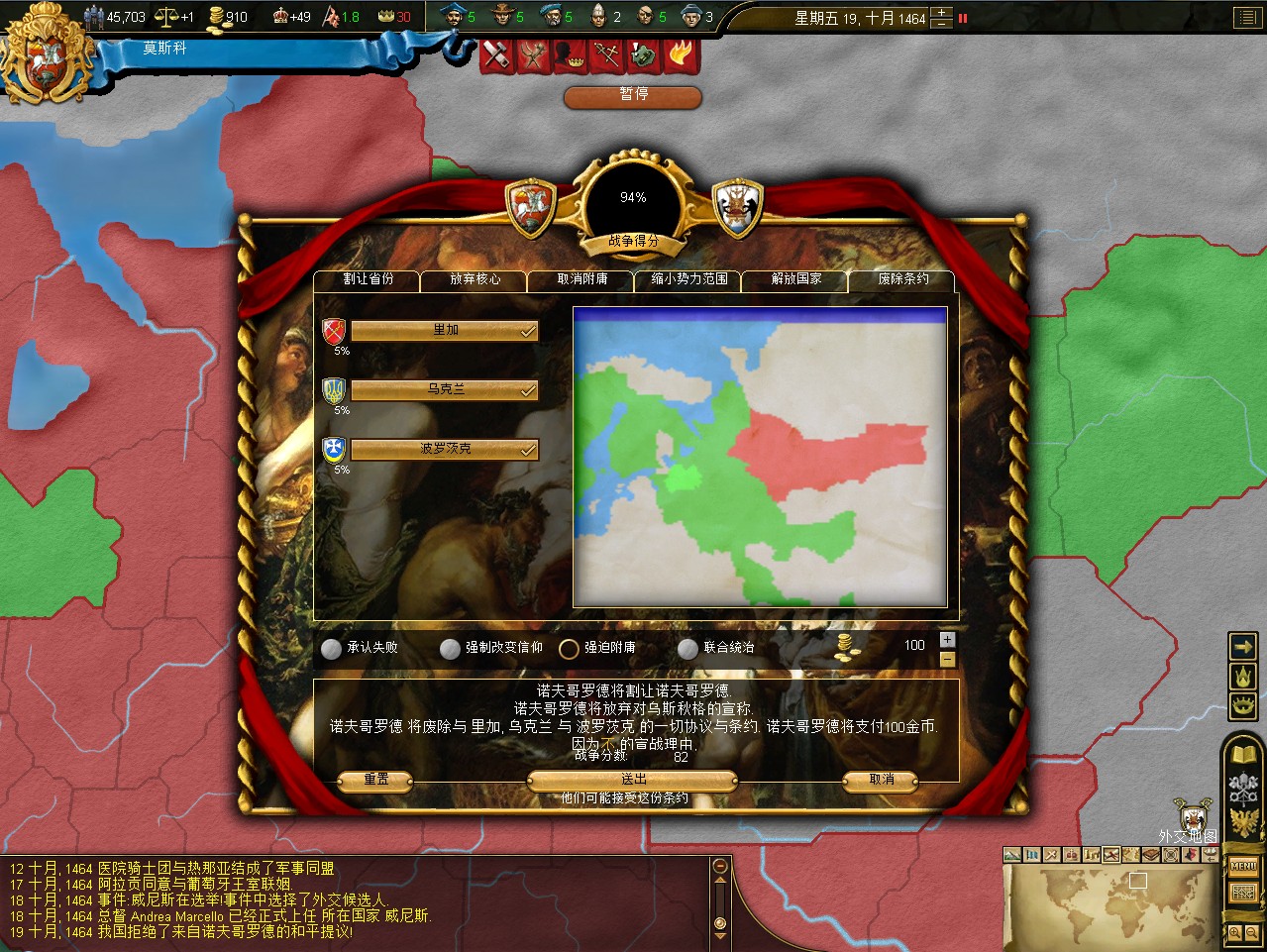 可惜割首都再附庸,分数就超限了。只能先割首都。又多了个贸易中心。