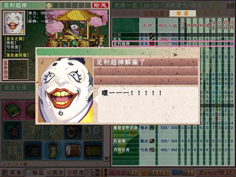 第九回合没什么事情做,巫女机关打的只剩本丸,等反击抓五右卫门。攻了足利一丸,连点0女和风华的事件,话说不知道怎么回事,往往0女事件根本不用点,自动冒头。这次却怎么都不出来。手动点吧,毕竟0女带来的满足度是非常可观的