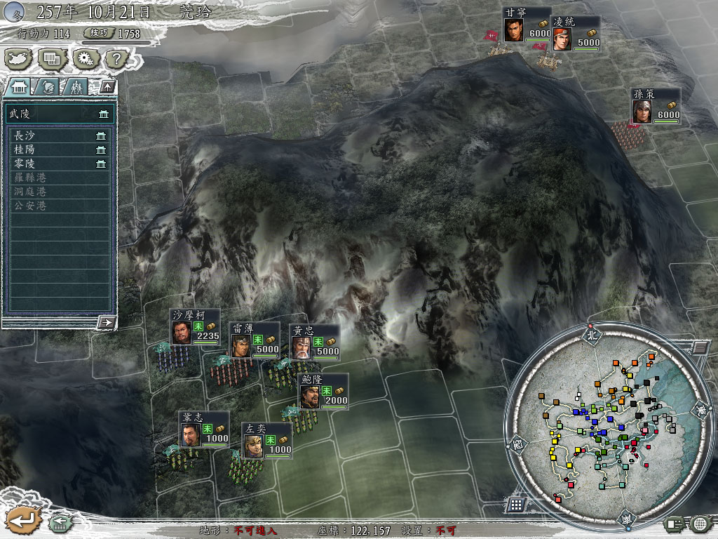 5,311蝴蝶效应很厉害,我的武陵城就是因为我SL修一下路上的火船。才使金旋守住了武陵。如果不修,直接打港,韩玄就占了武陵。韩玄占武陵就不好打了。所以有时候SL很好用,但也没必要每次都追求这好结果,只要让战局随你预想地发展就行。