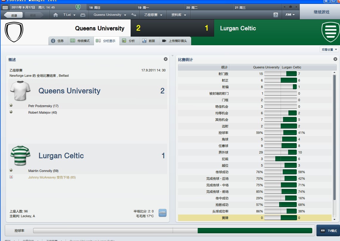 选的队是北爱尔兰乙级联赛的女王大学队,Queens University FC 官网是: