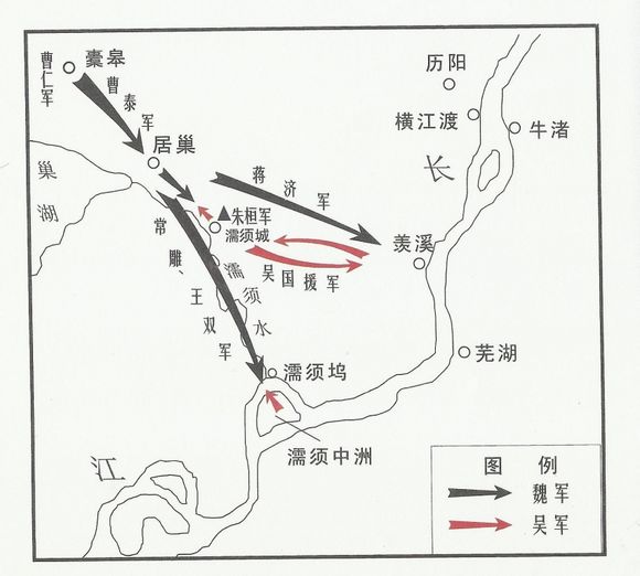 曹丕八岁时能文,博贯古今经传诸子百家之书。据其所著的《典论.自敍》所述,十岁时就已跟随其父征宛城,其后从征刘表、孙权时如同他的父亲一样留下一些诗词歌赋,有《述征赋》、《浮淮赋》(《北堂书钞》、《太平御览》作《溯淮赋》)等,建安十七年与二十一年(注1)曹军攻濡须坞的战役也有跟随。可以断言曹丕应该对进军濡须和江陵的路线是有大概的了解;这两个战略要地的环境有基本的认识。