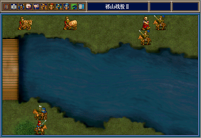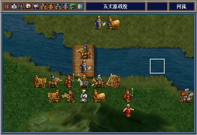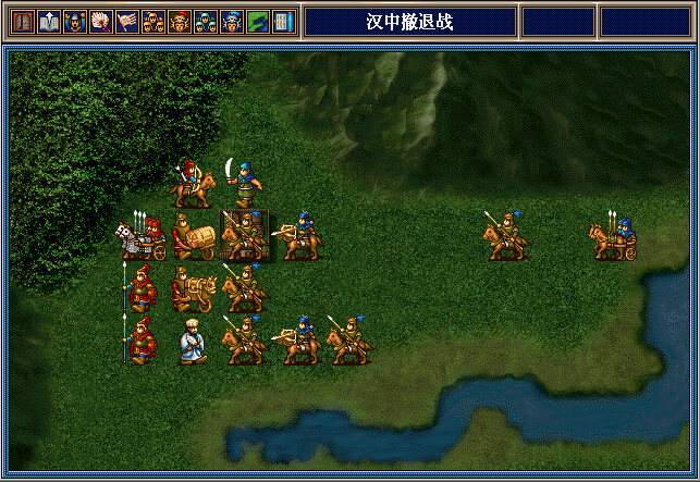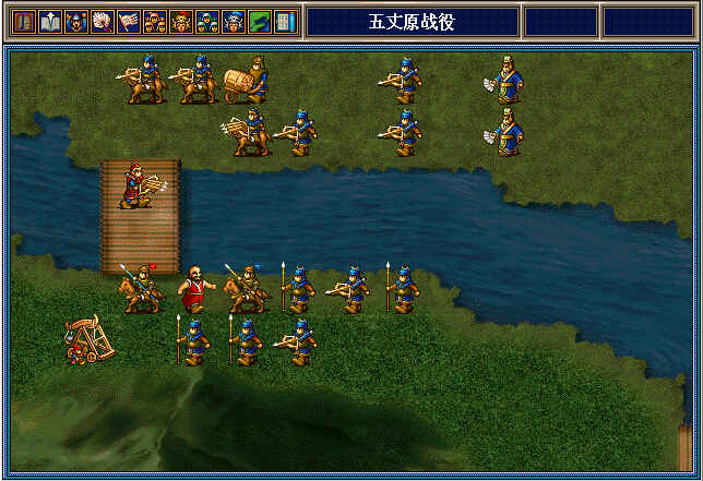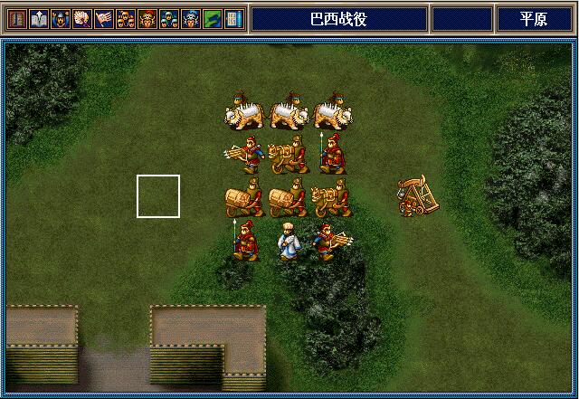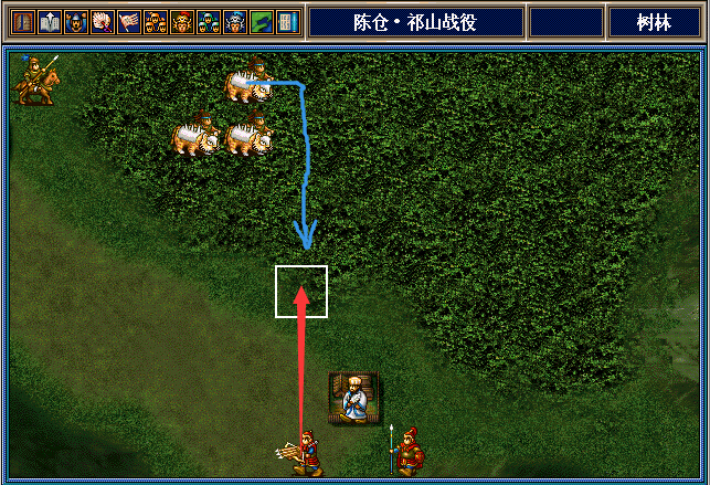 魏延将上面这3个南蛮骑兵引到左上村庄附近,之后就往下走,和孔明张翼李严等人合力干掉朵思王。这3个南蛮骑兵可供吴懿慢慢敲,也可以供邓芝反击用。