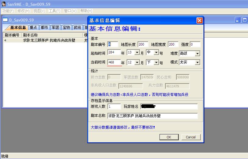 ps:用过一个剧本编辑器,ME.exe,里面有编辑存档的,结果改了后,时间不对了,变成460年,进行游戏就结束,发现这个