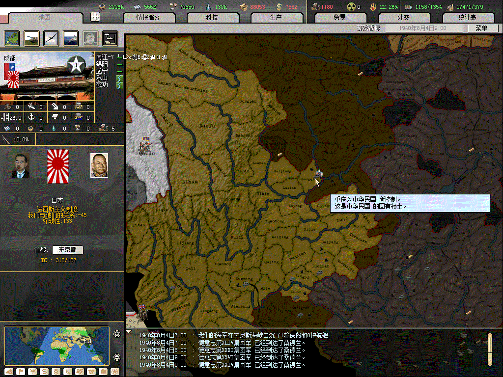 40.06.26毫无悬念的平推,可以放出法国了,哈哈,超强傀儡,而且可以避免很多游击
