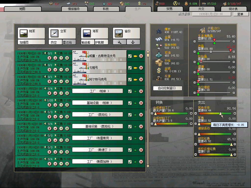 之前我在52发了个走德国特色市场经济道路的0.51版得HV难度战报,战略思想是一样的,只不过VV难度下没有能力去出航母了,弄几个潜艇玩玩吧,不知道能不能保证登陆