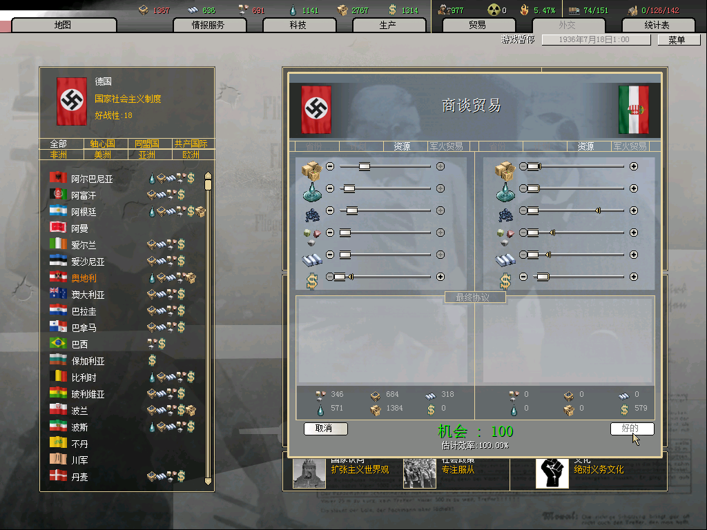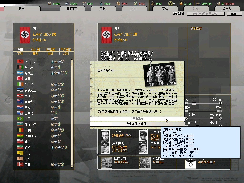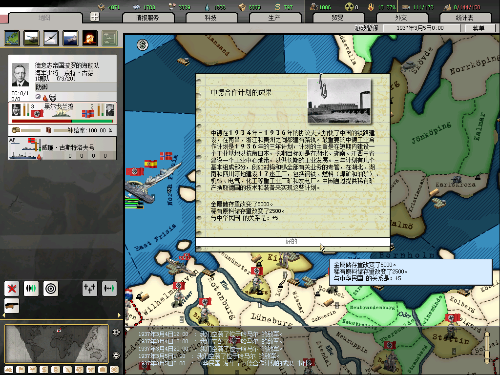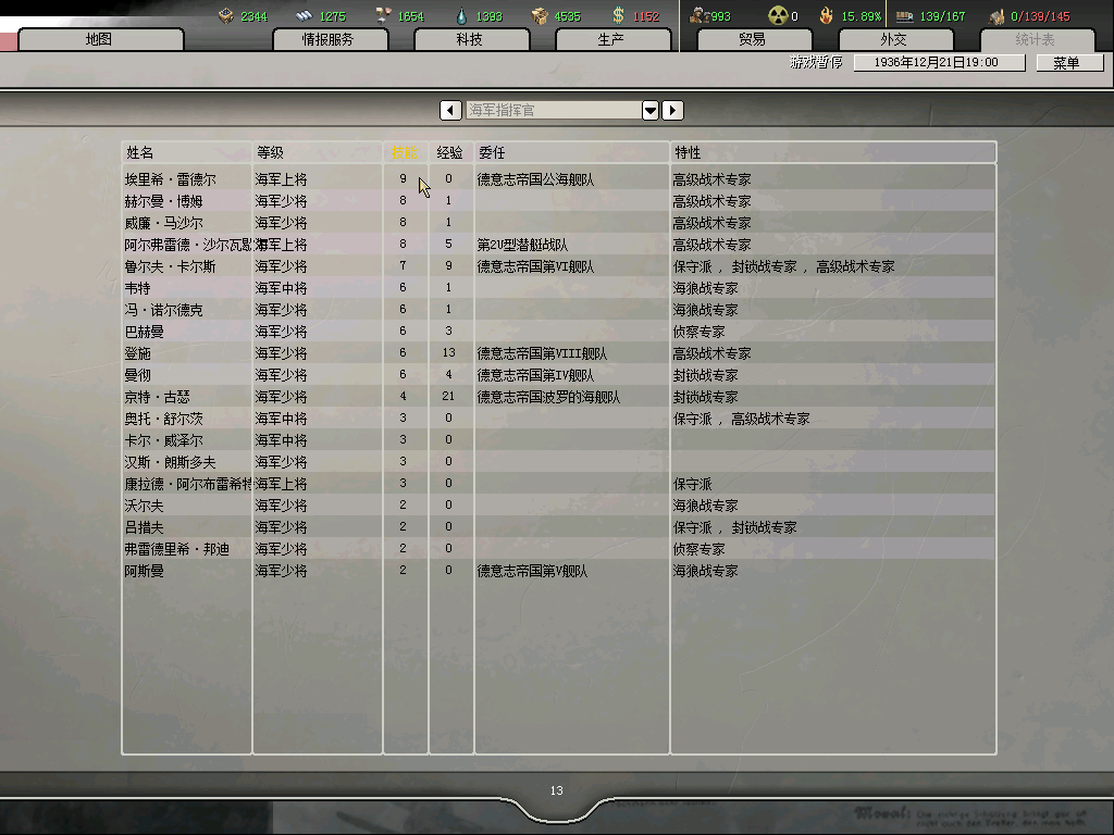 36.01.01开局,海军科技变化非常大,这个船舶技术是给海权国家的福利啊,德国科技组研究海军真不给力,其他科技组感觉也削弱了不少,奔驰和克虏伯都废掉了,研究坦克还不如苏联,苏联好像有5适性8级科技组