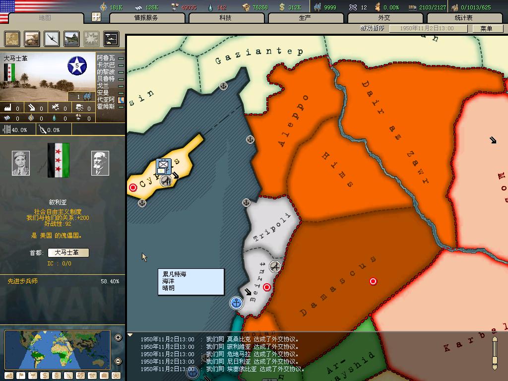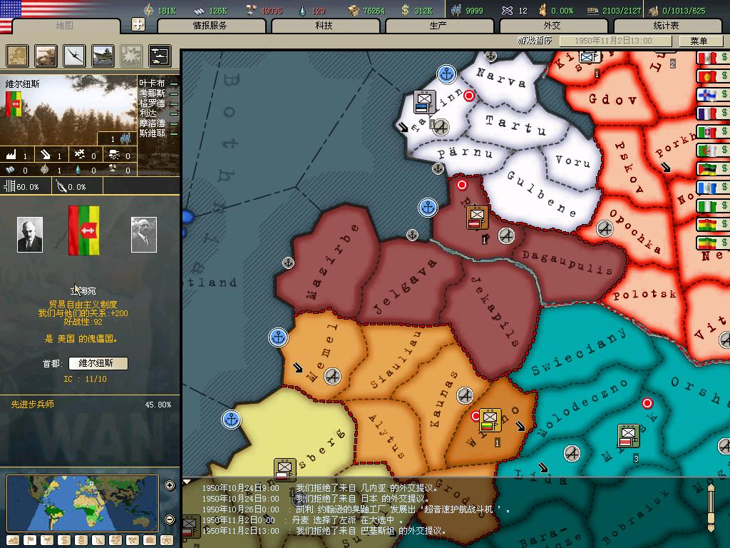 编纂这本地图册的前提是统一世界,我们首先必须达到这个条件。而且由于游戏到1955后无法放出傀儡,所以还要赶在55年大限之前统一世界,但幸好,我做到了,下面几楼是我统一世界的证据。这一部分是不属于本地图集的。