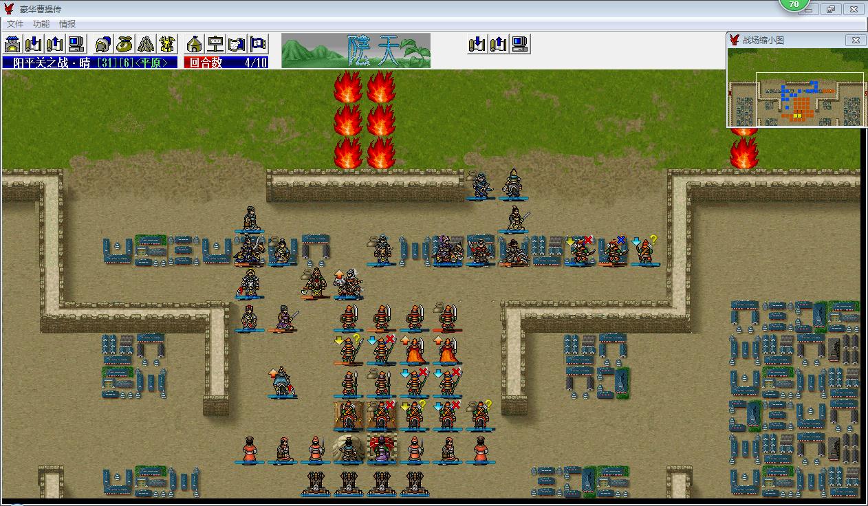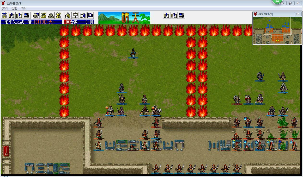 写这篇战报之前要特别感谢赛特122(jhzthpp)提供的豪曹14阳平关50级满级存档以及伯伯的曹操传优化补丁,让楼主能更好的实现自己的战术思路。下面说正事。