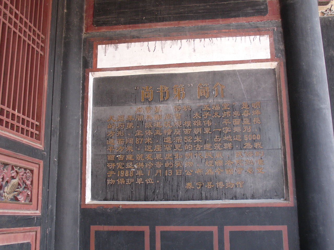 座落于泰宁县城中央,为全国重点文物保护单位,是明代万历四十四年(1616年)进士、天启间协理京营戌政太子太保兵部尚书李春烨宅第,面积达四千多平方米(南北长87米,东西宽52米),主体建筑为五幢,辅房八栋,分五道门一字排列,除厅堂、天井、回廊外,有房120余间,均系砖石、木结构,甫道、庭院、走廊、天井全用花岗岩石板铺设,厅堂是方砖地,天井有石柱花架和石水缸,庭院前的甫道设五重门楼,横匾分别有"尚书第"、"柱国少保"、"四世一品"、"礼门"、"义路"、"曳覆星辰"、"依光日月"、"都谏"等石刻。