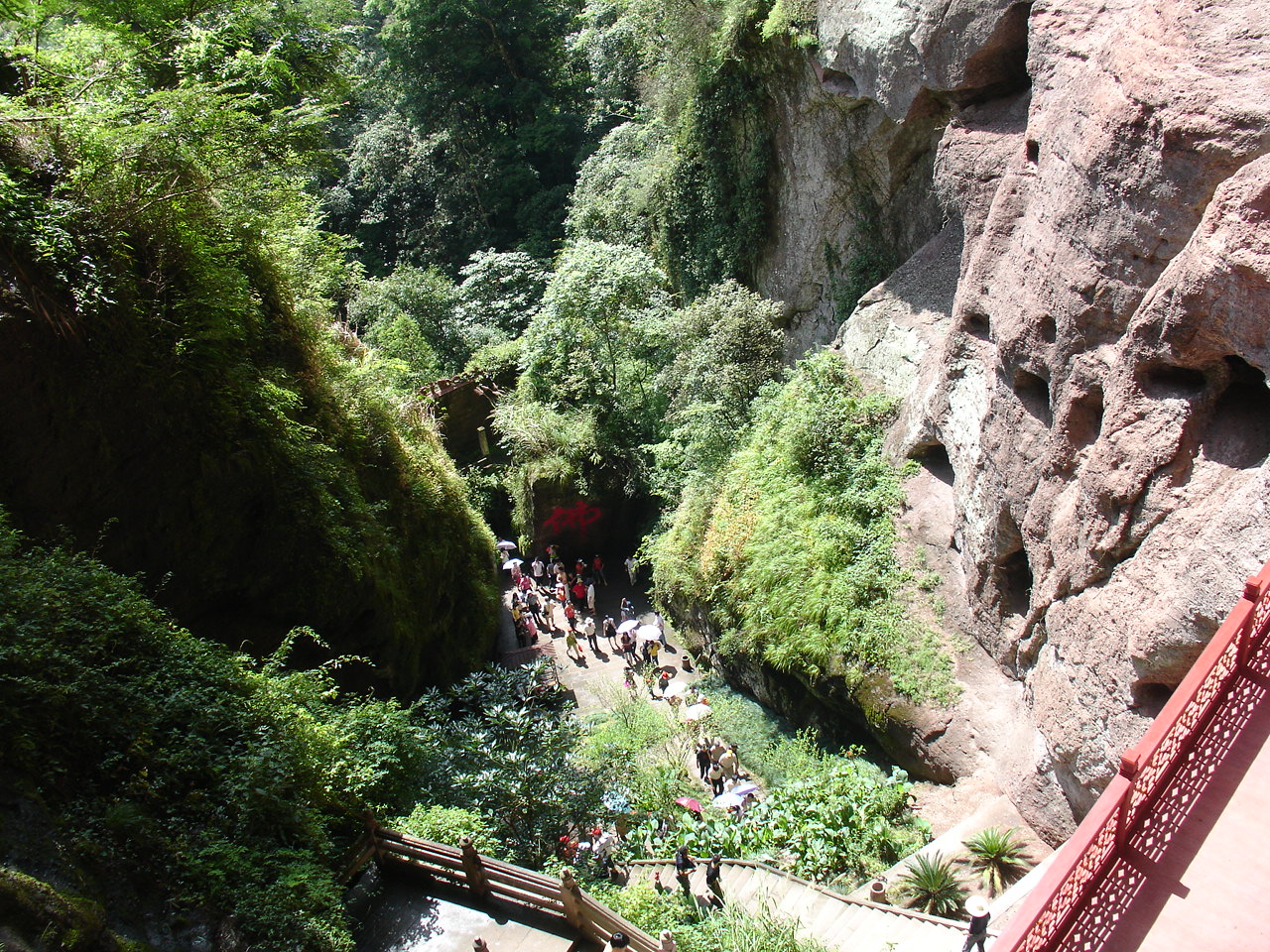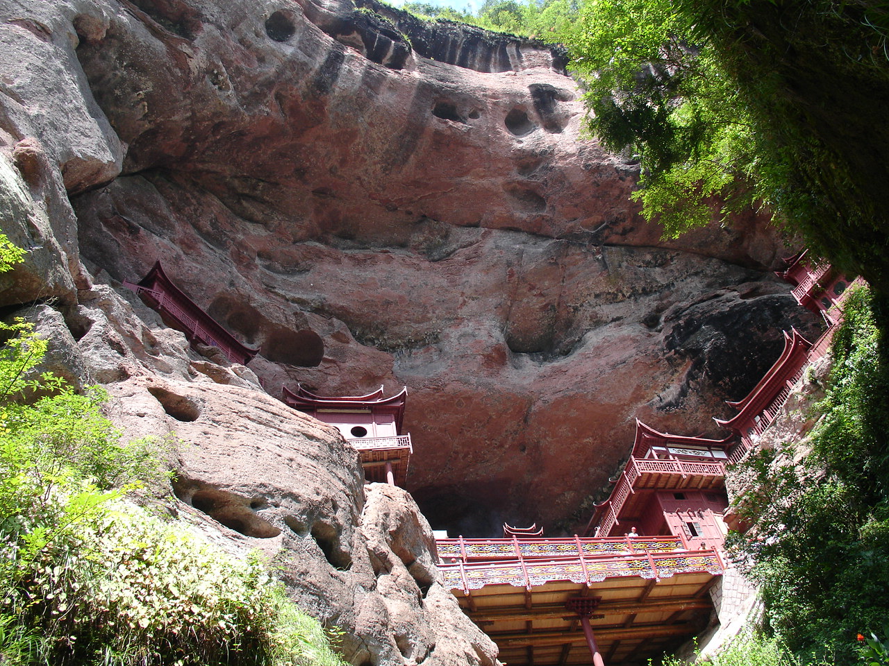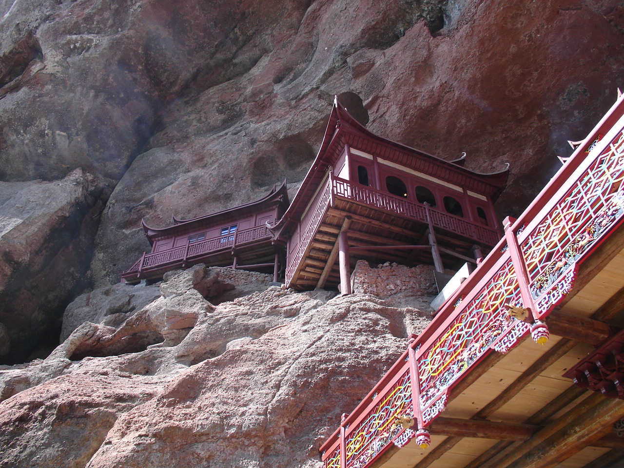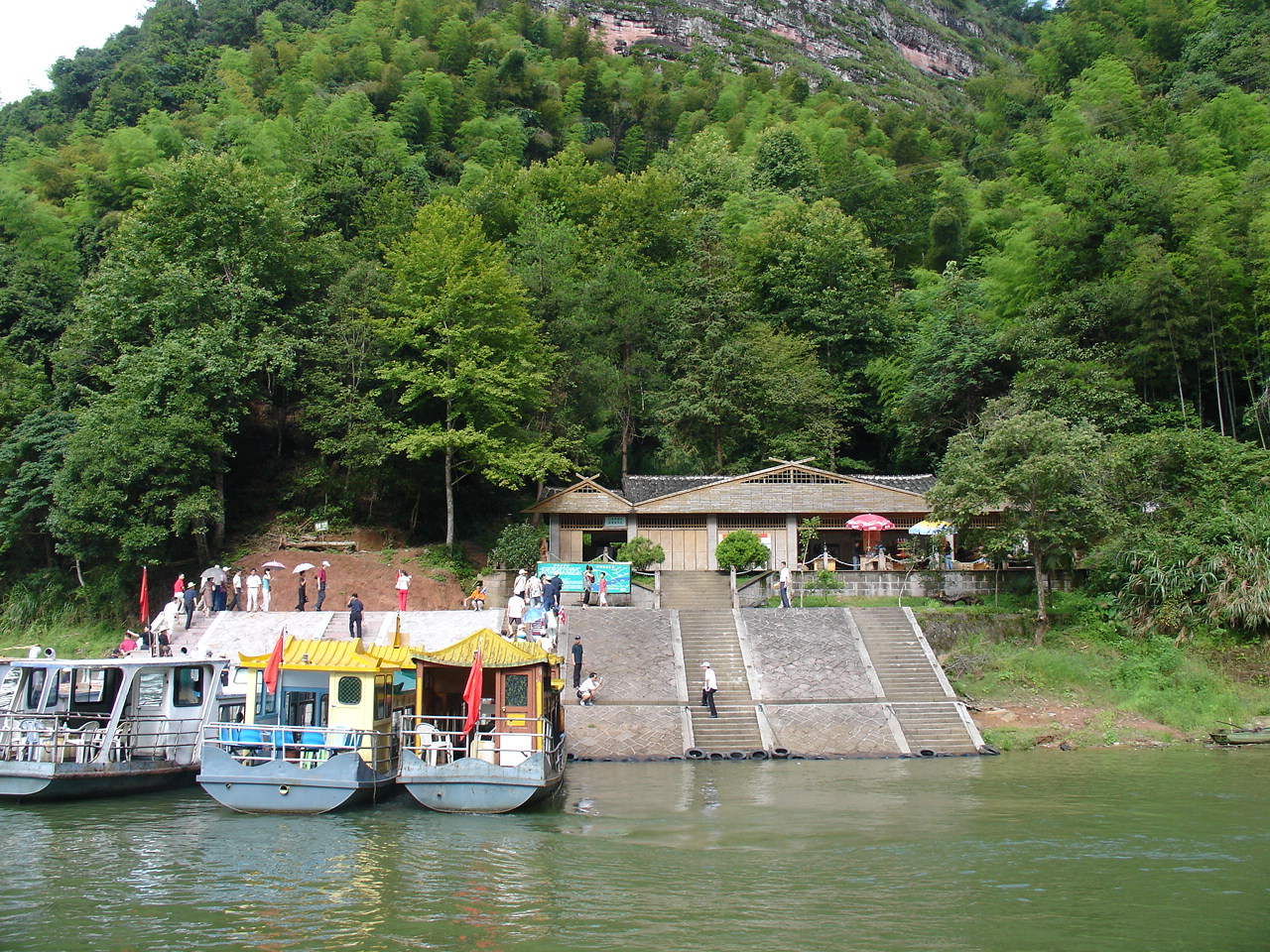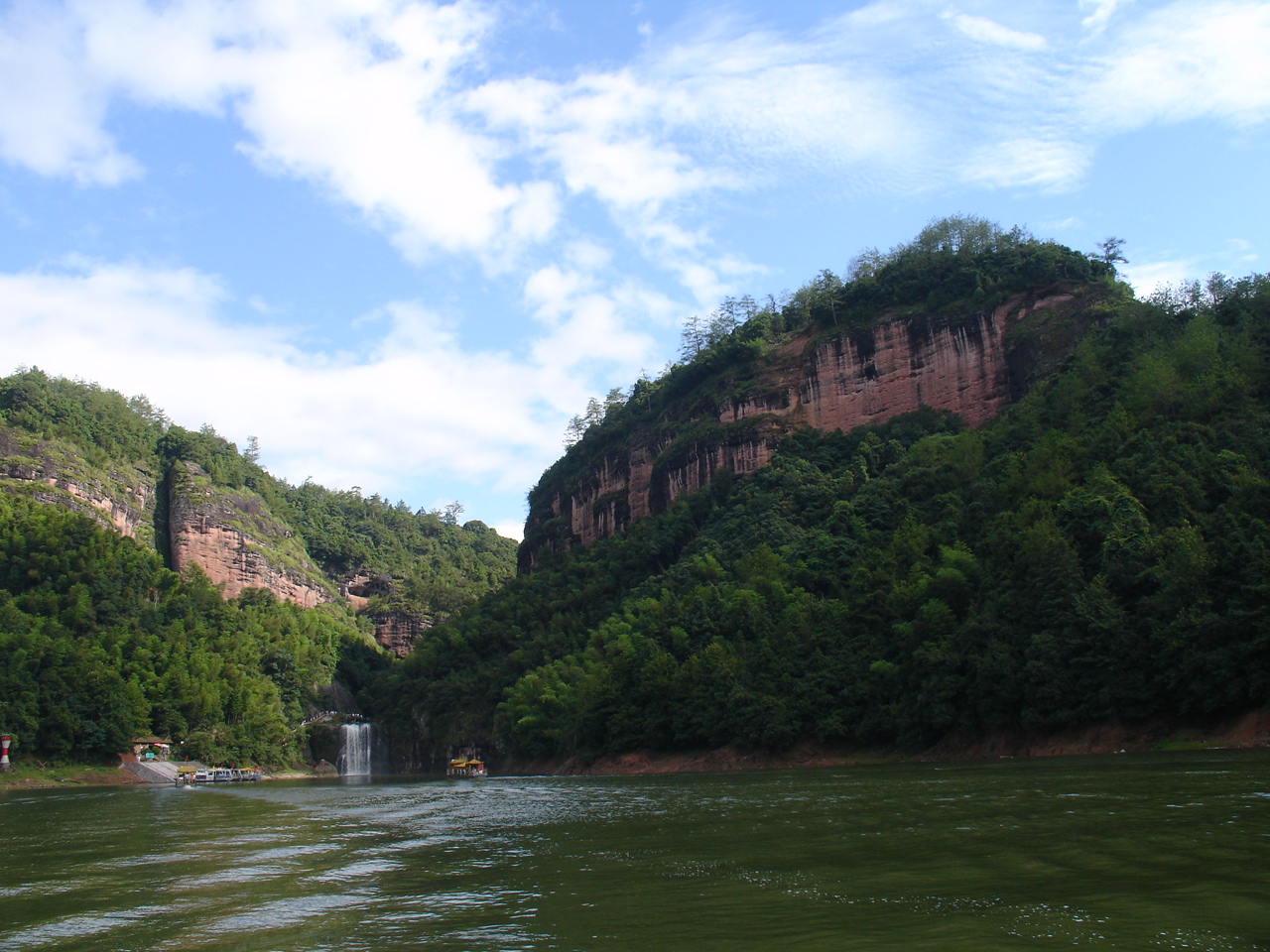 乘船前往第一个景点 是座小岛 岛上有瀑布和悬空寺 甘露寺吧!!