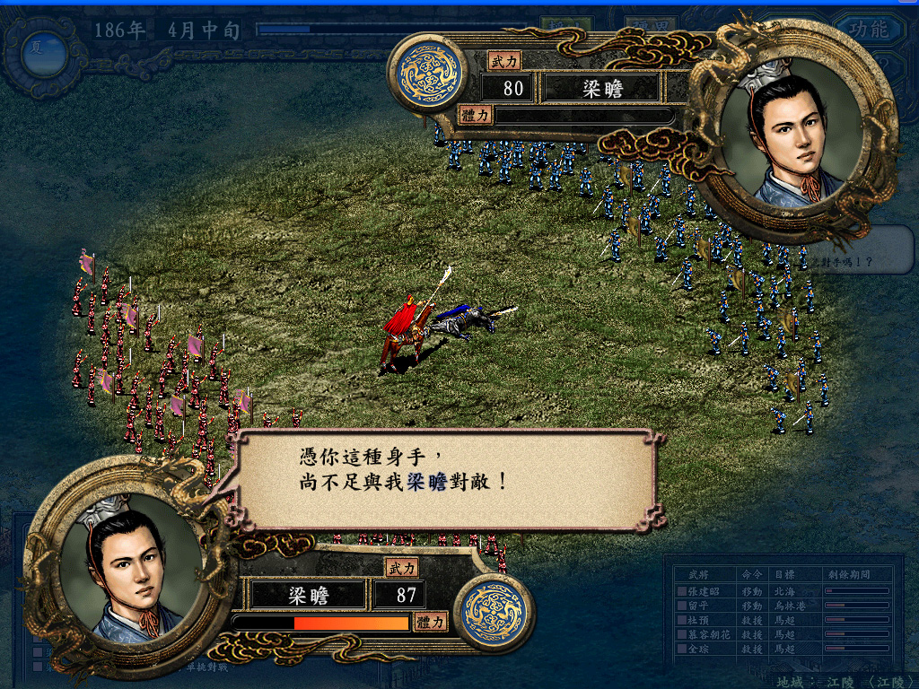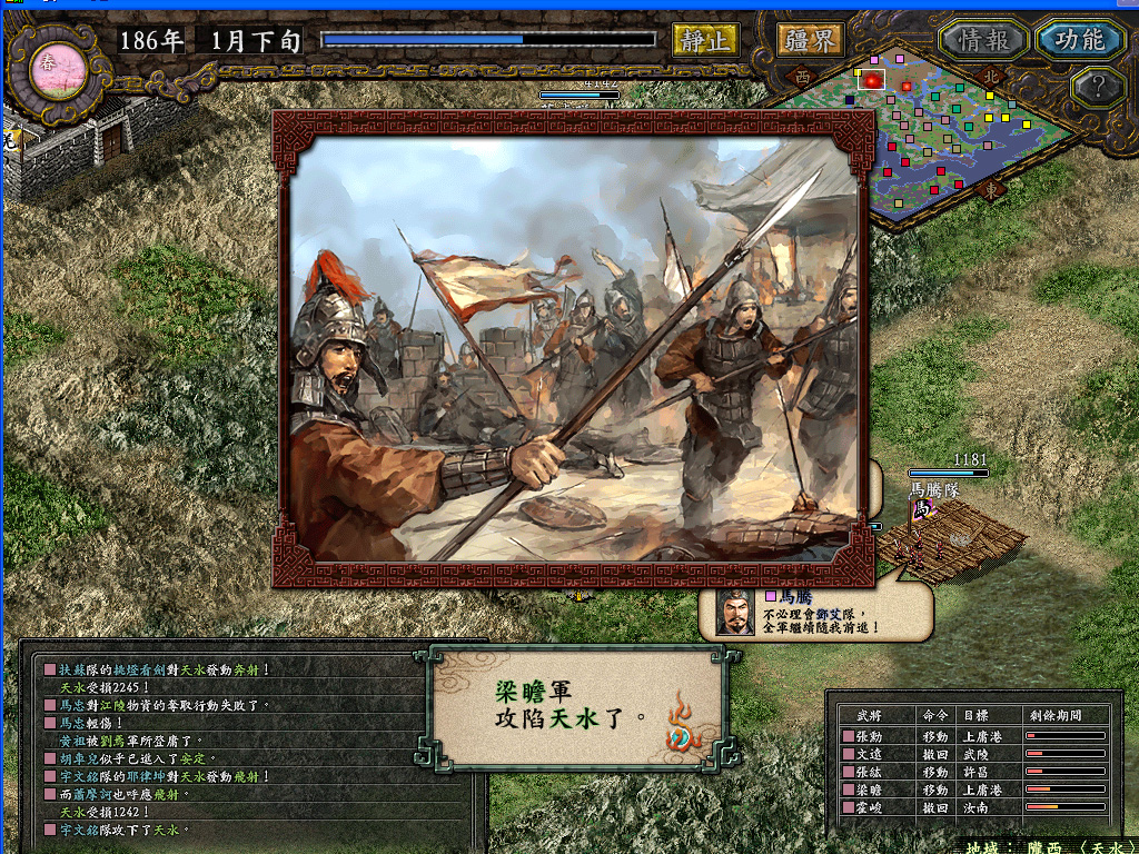 真正的战局有两处,我军三支野战队(两队骑兵一队奔射)在天水附近和天水军、攻天水的刘焉军混战