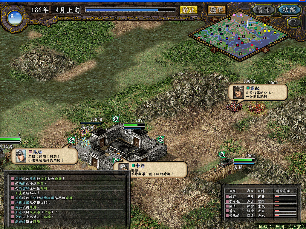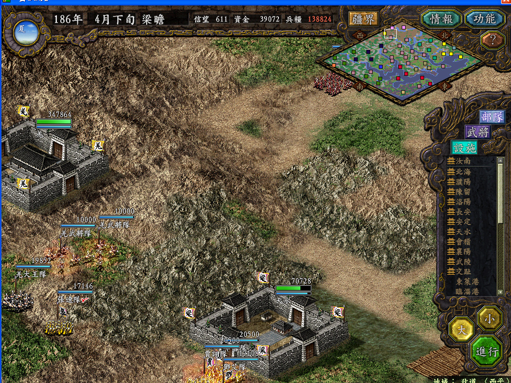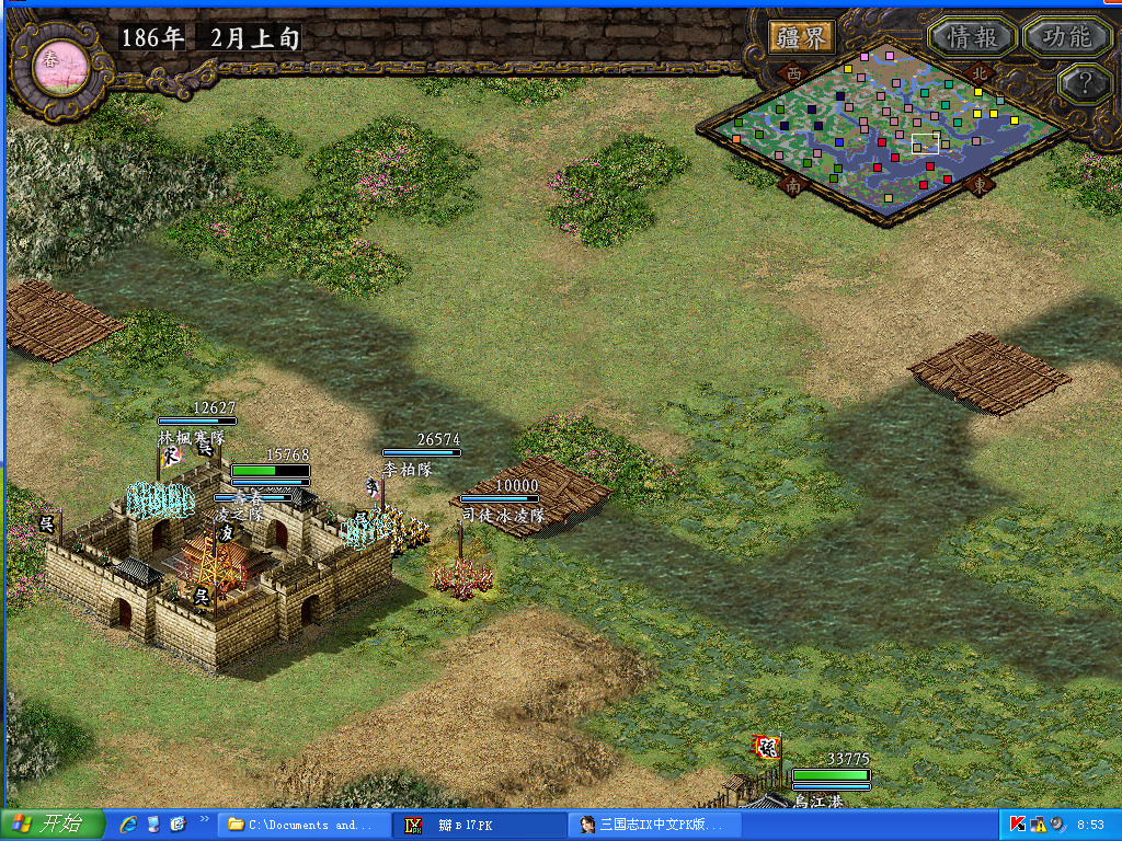 在后援洛阳屯军的不懈支持下,马儿终于看到了转机,其时已经进驻平阳的老袁不知怎么想的,看到偶将孟津的守军转移到河内之后,竟贪占空港孟津,领大队人马再度奔袭。于是偶的河内部队马上出发(遇敌无视)抢平阳以支持马儿。黄河渡口的诸港关系真是错综复杂啊~