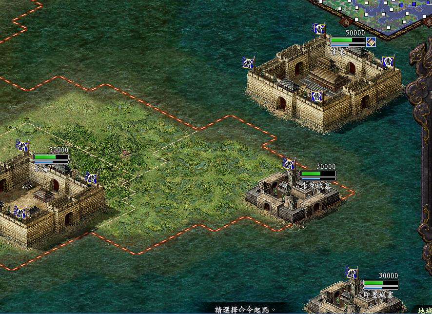 全部置身水中,只有水战才行。全地图,有4个据点1个城池是在水中的。只有水战才行。