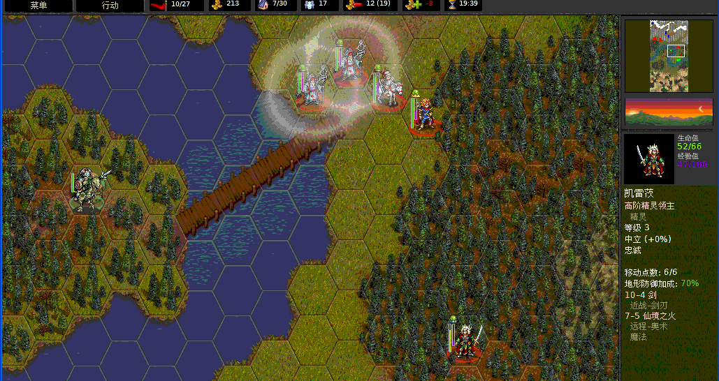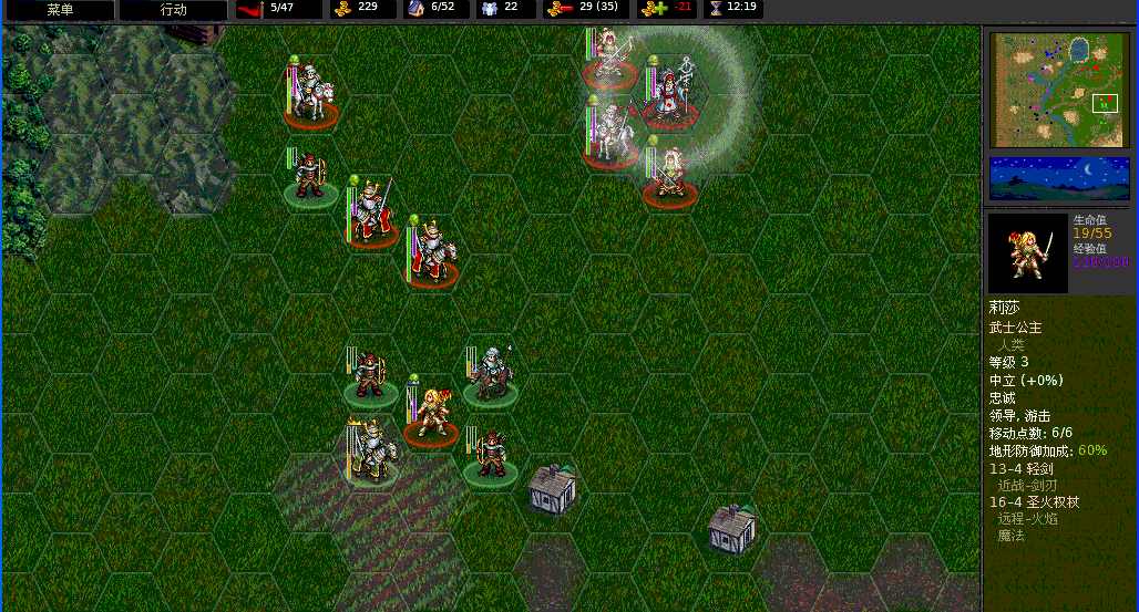 高阶骑士是HP最高、单次攻击杀伤力最大的兵种,两种攻击分别是:12×4的剑刃和17×2的穿刺(带冲锋特性)。看看这个数据就知道高阶骑士是多么的强悍。移动力7。