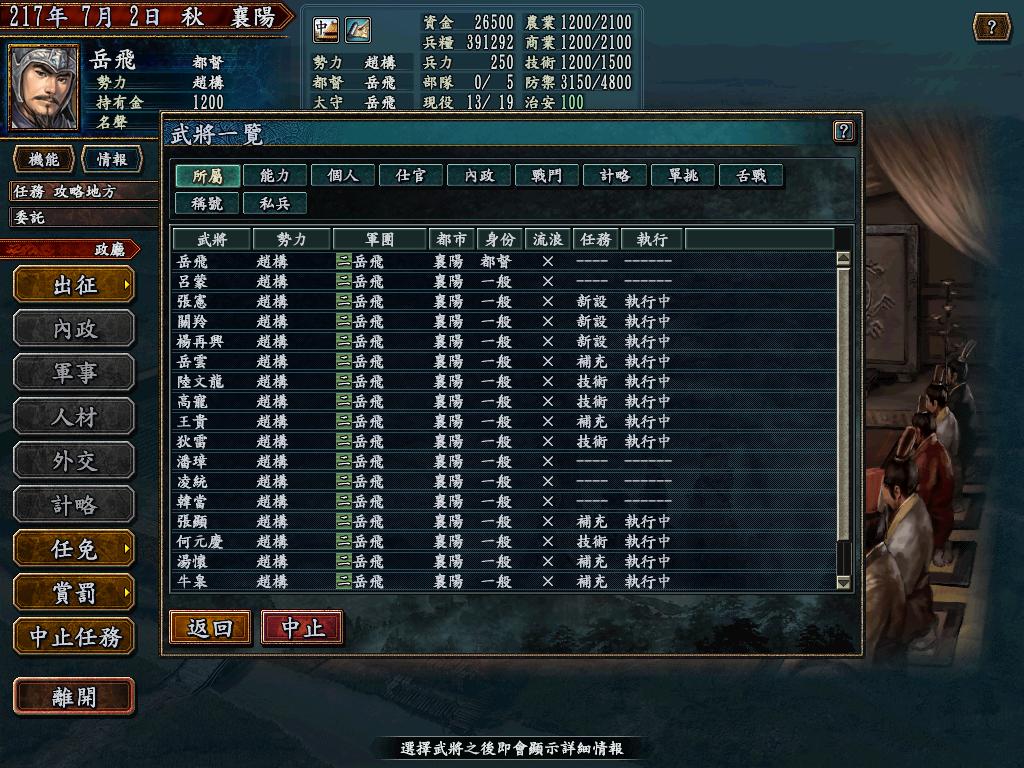 这张是给君主一些将领后君主主城的将。因为是举例,岳云之类的也全给送出去了。