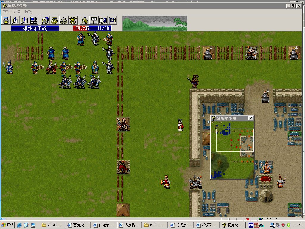 第二回合,通过杨延嗣的反击,三骑兵只剩2个,在砍掉上边的,杨延德砍掉下边的,其余人砍杨延昭旁边的,可能砍不死,看你出场顺序,此时柴MM会毒杨业或四郎;六郎如果被毒或被砍血少,八郎正好出来补血。到敌军行动是呼延会主动找老五单条,无结果。