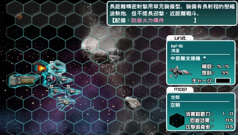言归正传,第一个我要提的是《异形战机战略版》,异形战机,也称R—TYPE,该系列一直都是射击类型的游戏,这次在PSP上竟然改成了SLG,确实让人眼前一亮,但这款游戏是否成功了,那就难说。因为对于喜欢射击游戏的来说,不一定会喜欢战棋,而喜欢战棋的人,对该系列也不一定会喜欢,孤就是后者这样的人。