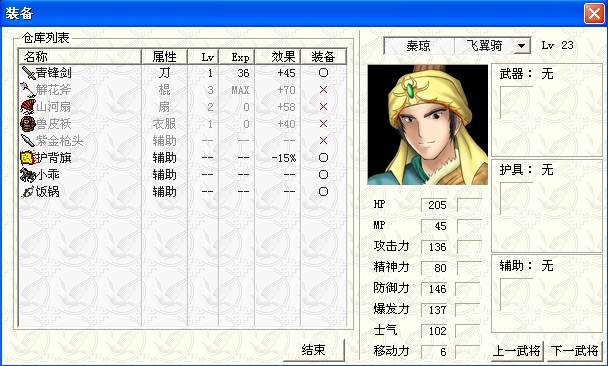 另外,游戏里出现过的统军(不管有没有名字)的武器等级似乎都不对,都比防具低了3级,不知道算不算bug。