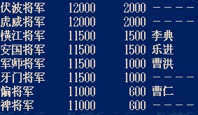 6、將軍位以及勇名修改。這是本人最想修改的東西!!將所以將軍位以及勇名和帶兵數重新修改,偏將軍帶兵也有11000啊!!縮小將軍位之間帶兵的差距,讓更多的武將能帶更多的士兵!更新無將軍位帶兵為10000。