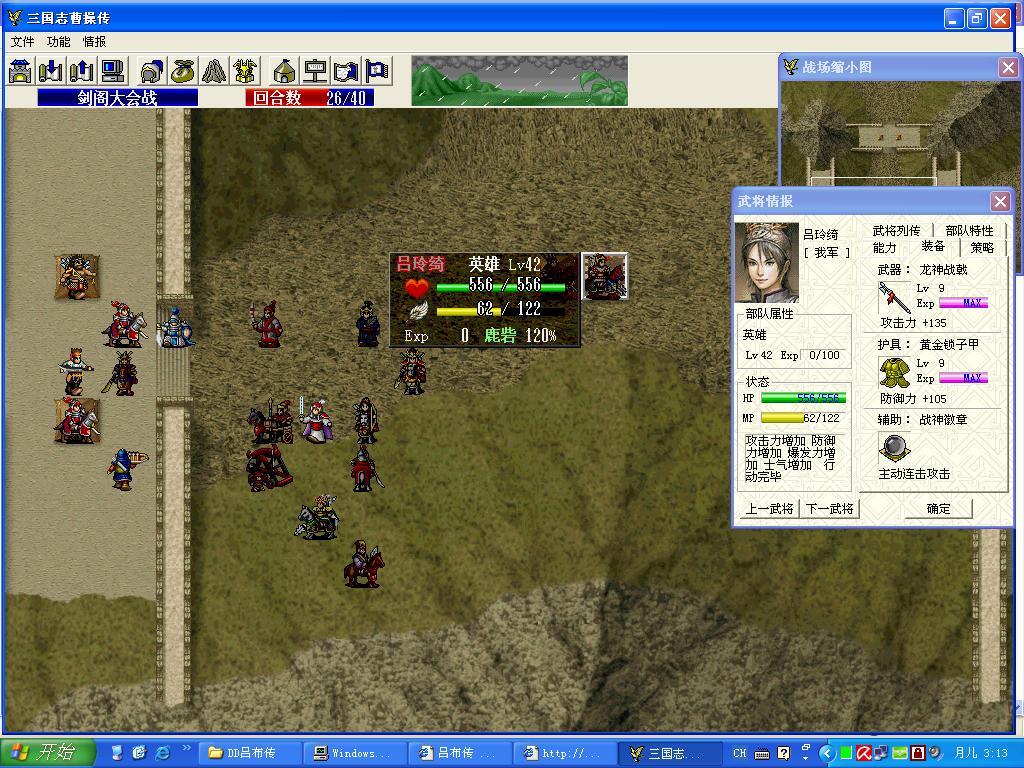 吕MM 没用龙啸天驱,S/L 了几次,用吕布(虎枪+黄金+玉玺,秒人王)的双击秒掉的赵云