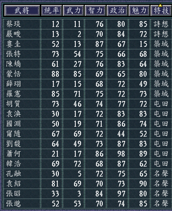 对于相当一部分垃圾武将来说,设置特技是非常困难的,所以难免有些牵强附会,期待理解。