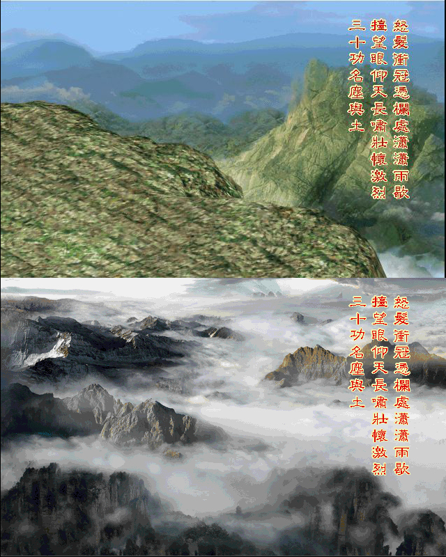 主菜单的画面是轩辕老人梓庭君的妙手绘制,很漂亮!不过后来泡泡又做了一个更精致的,一直没有放进去。我现在给导进去了,看看效果。