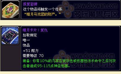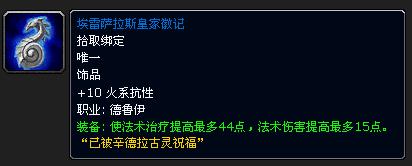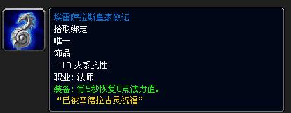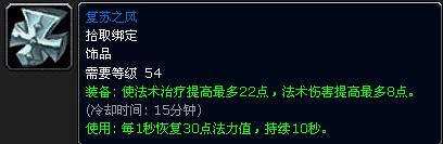 装备后效果:在成功施放法术后有2%几率可以触发100%魔法恢复的效果,持续15秒。