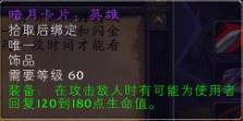 装备后效果:在战斗中有一定几率在攻击敌人后治愈120–180点伤害。[不能和其它相同治疗效果重叠]