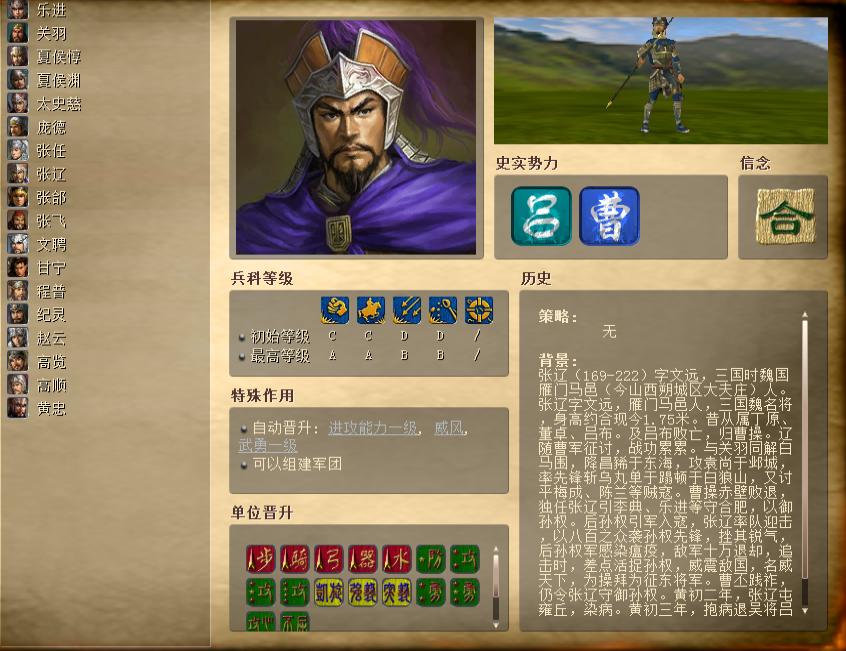 2)兵科等级(分为初始和最高),影响将领的带兵数和相应晋升