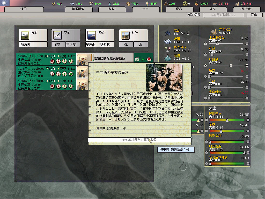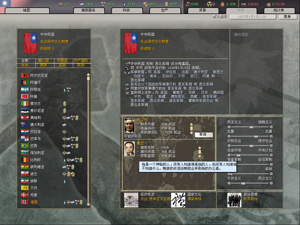 开始投入谍报预算到对日情报中去,不过现在即使满10人间谍,窃取蓝图的概率也可以忽略不计,所以基本是摆设了