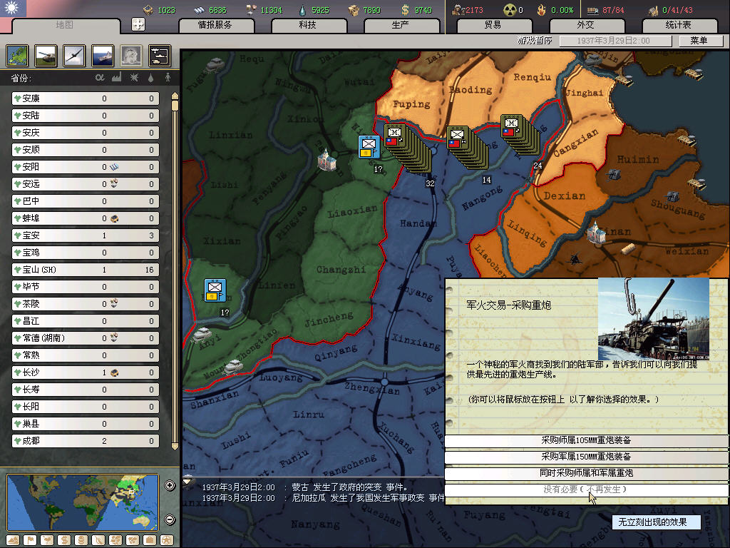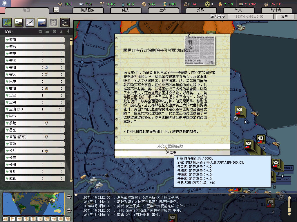 美苏德的部队交易事件也有问题,我读档的时候,还不到上次买部队的间隔时间就触发了。。。。。。