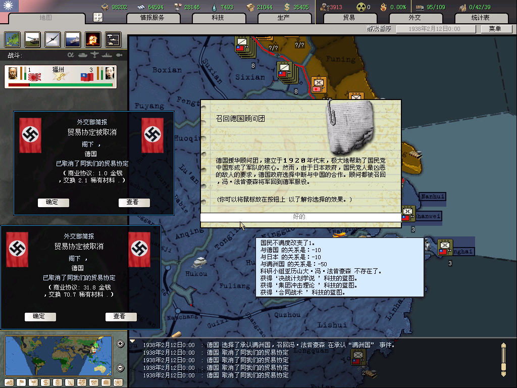 前面出了小概率事件的桂系屈服,所以现在桂系现在只剩一个桂林,一旦被占就先被霓虹吞了,所以我把失地条件给删了,表鄙视