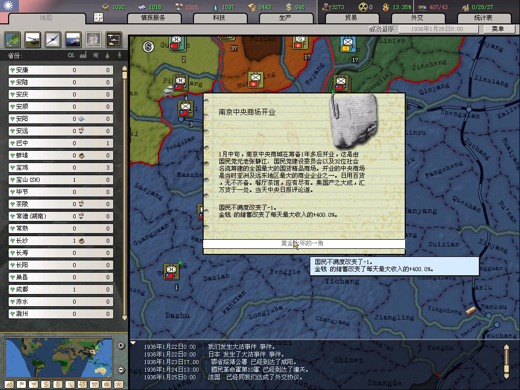 然后顺便说说这局的基本科研思路,只研究陆军、陆军战术、工业3个体系。开战前尽量快出36步兵,然后开战后尽可能研究陆军战术,工业研究为前两者服务