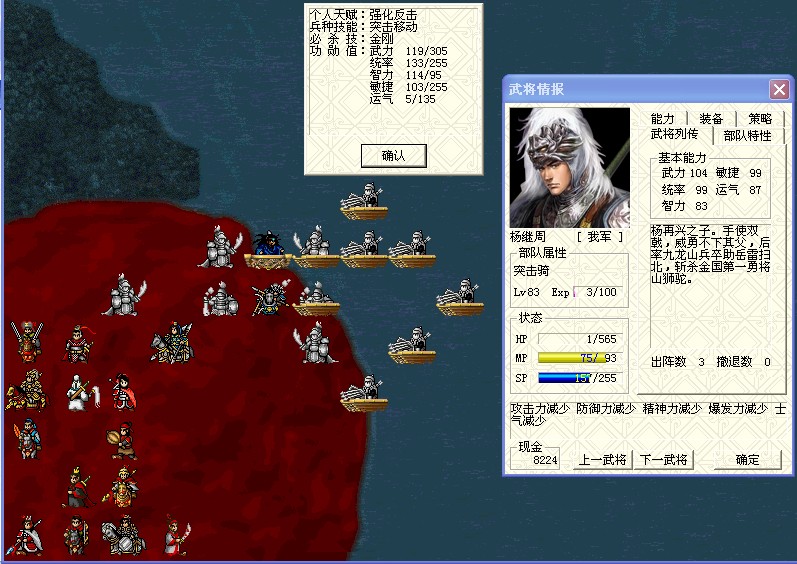 我用的Ekd5主程序是修正了练武场的那个,不知道怎么回事,轩辕春秋下的说明获得功勋+4,我一直以为是每回合+4呢,不过实际使用时,不是那样的,而是动作一次,就能增加功勋。以小杨为例,秦桧+几个弓手+几个步兵围着他一同胖揍,20个回合就将其防御从89升到了99+113。With老大如果看到,请说明一下。