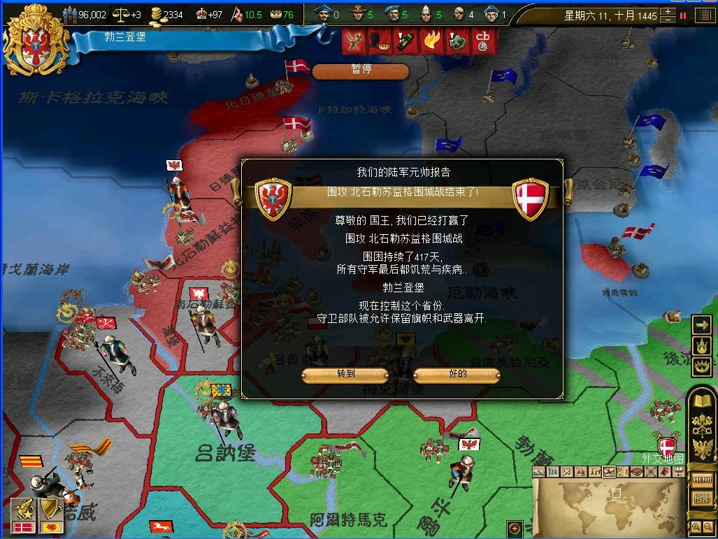 汉莎同盟还奢望能帮助条顿一臂之力,可惜他的主力部队在阿尔特马被全歼了.......他们的气数已尽,就等着自己的省份被我公国大军一个个拿下吧