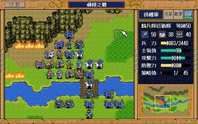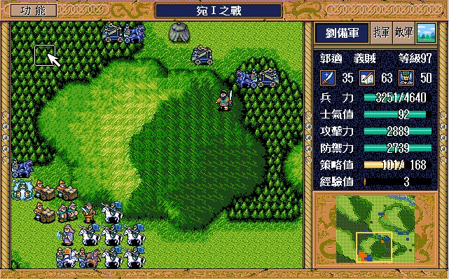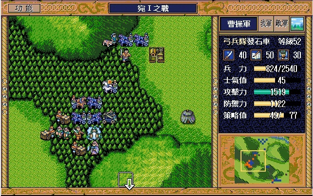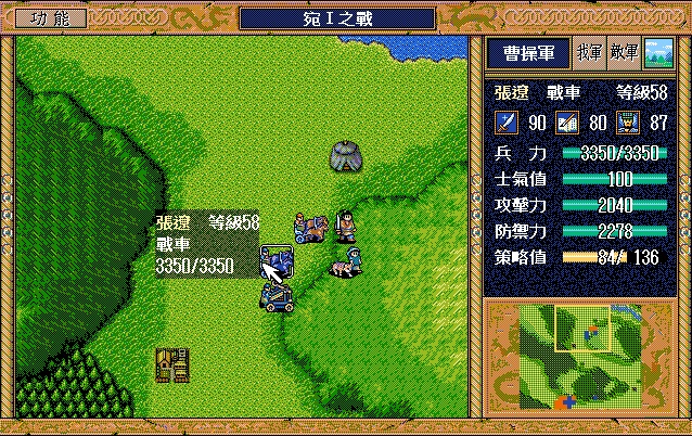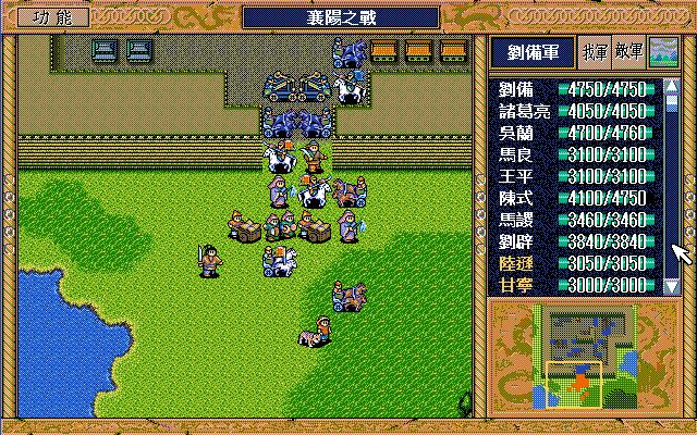 对这四个人再解释一次:刘辟其实很好养的,从瓦口开始前期反击杀伤并不大,后期往往可以让他单独行动,弄个村庄或鹿砦,放个敌骑(最好是名将)在里面就行了, 之所以要求后期追级的贼策略要高原因就在这里;剩下3个大策略者,陈式一个人有富余,按我的进度宛II以后3战都可以再上1个大策略;沙摩柯只需占4个位置就可以用襄阳青囊,所以只需再挤出1战即可;藩宫前面一直可以压级,按木之的成绩到雒I为47.93级,刨去2主将算47级,兖州之后只出了江陵、公安、雒I三战62回合,后面还有没有烧火机会要再算过,但即使现在就变战车也比关纯优了。请注意,关纯天然出成绩应计算到兖州为止,为40级左右,用补丁会高一些,游客丁是42级,再多就要挤占他人资源了。