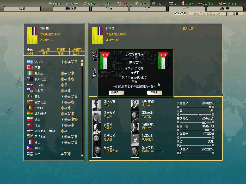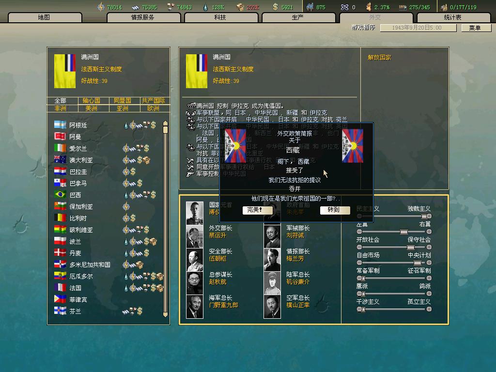 标题: DA1.3原版36满州国娱乐战报, 已更新至:1948年夏季 中日满轴心对抗英法美同盟 欧洲反攻势如破竹 攻陷华沙 吞并波兰!