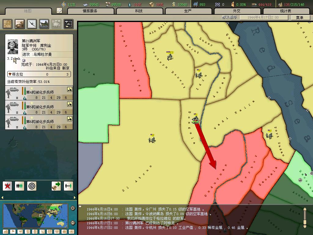 精心打造的机械化集团本来预备在非洲和盟军大战一场,现在成了圈地机器了,继续肃清北非盟军残余。