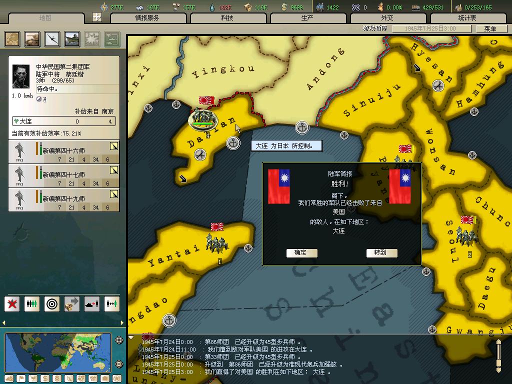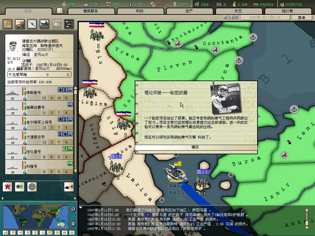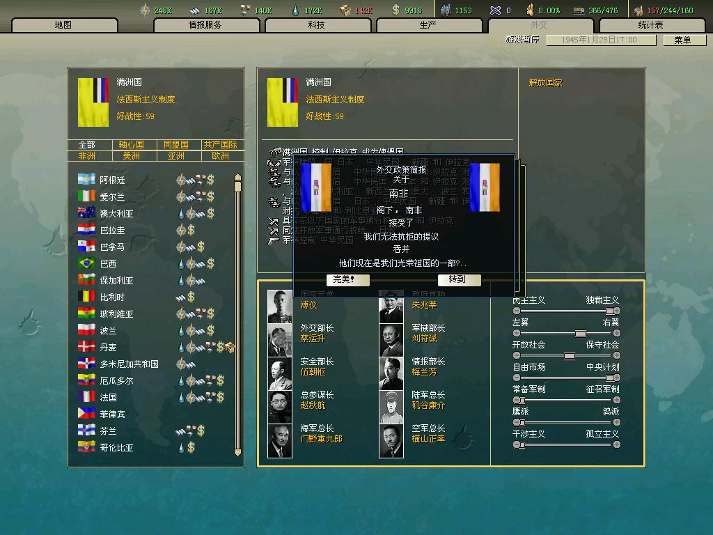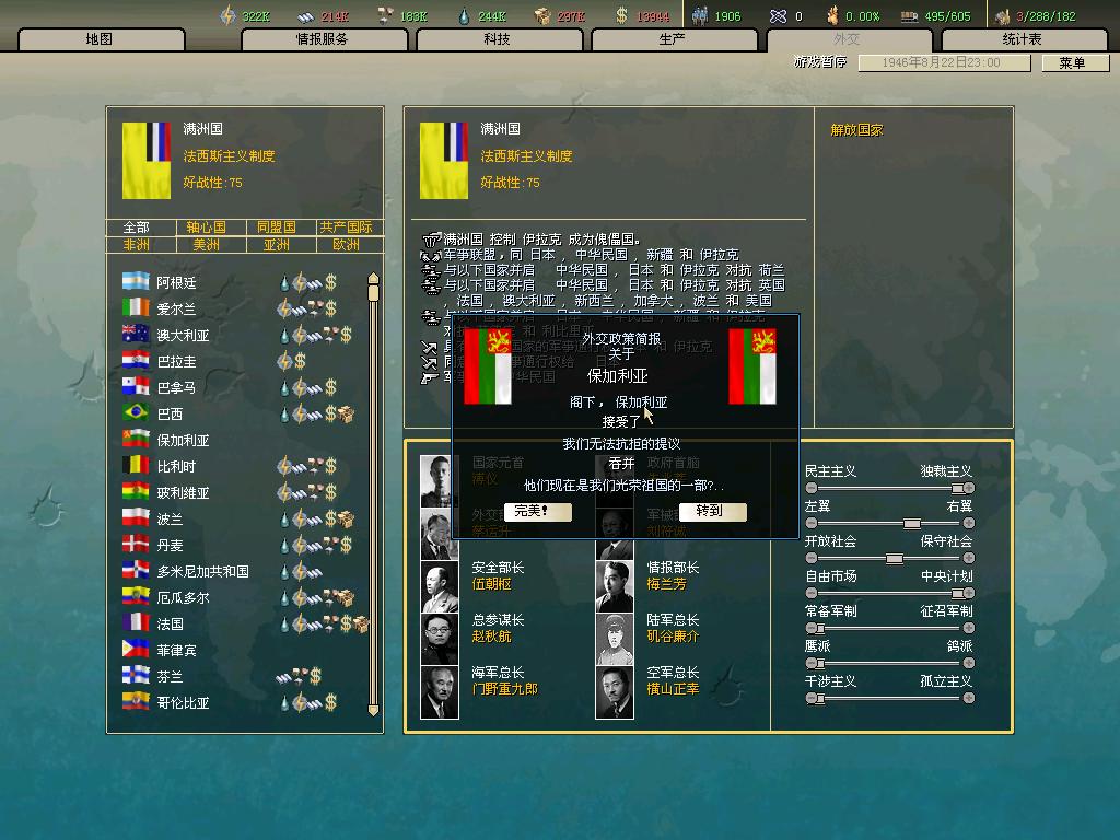 标题: DA1.3原版36满州国娱乐战报, 已更新至:1948年夏季 中日满轴心对抗英法美同盟 欧洲反攻势如破竹 攻陷华沙 吞并波兰!