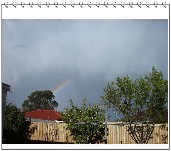 今天下太阳雨,猛然发现天边有彩虹,赶快冲出去抓拍。