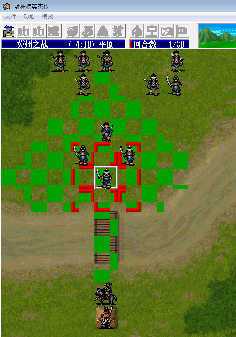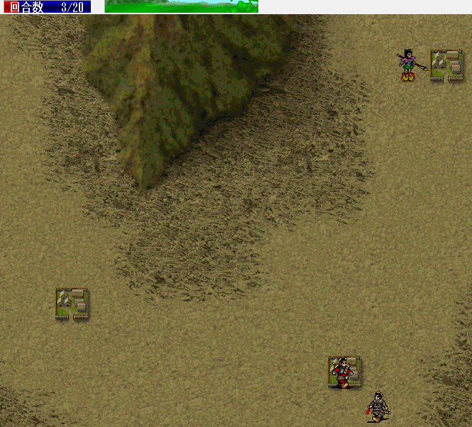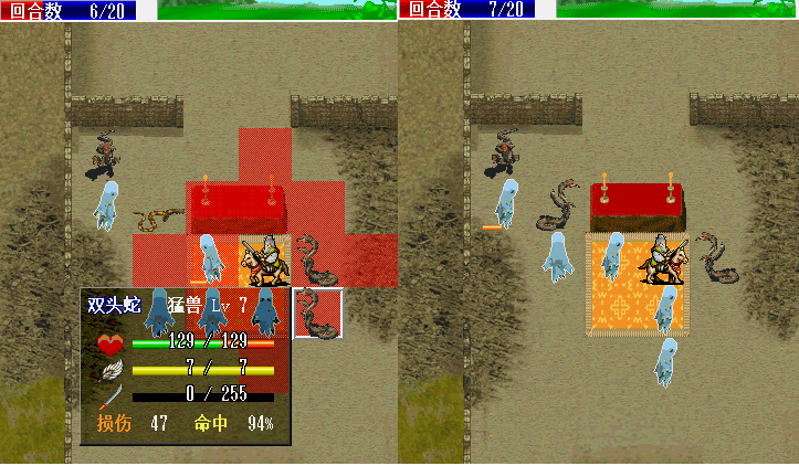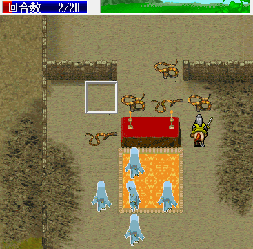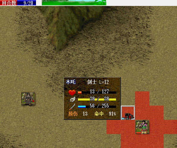 石怪石矶到达中心岛,石矶会繞到哪吒的前方兩格攻击,哪吒反击不到石矶,李靖記住加血,哪吒代師傅火燒石矶