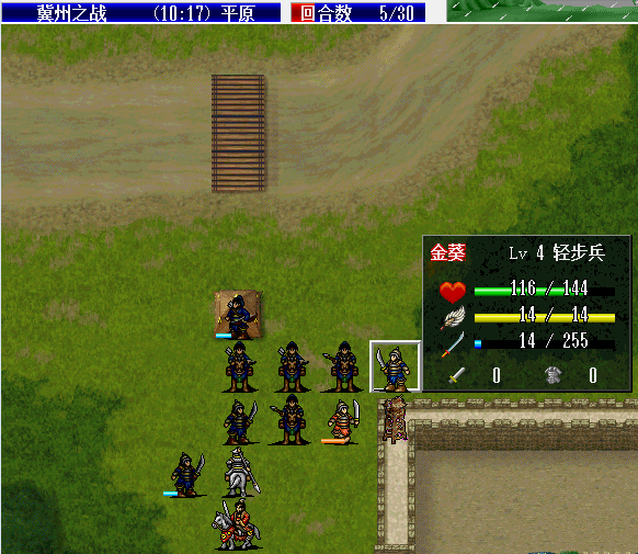 上关用了四个米,赵丙和老爸各一个,全忠两个,兵营拿了两个,本关开战时剩余8个米