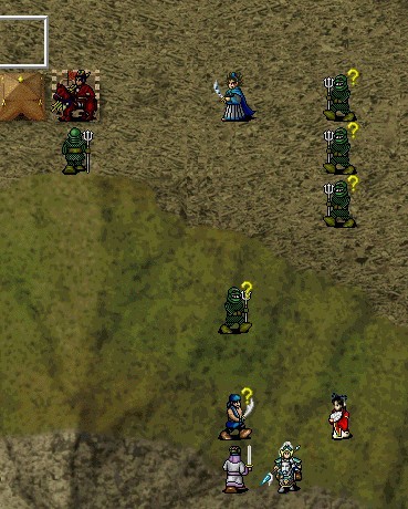 第三回合宗源灭道士及斜上角拿无名剑的勇士 周灵混乱追下来的勇士,美容输送宗源 敌军回合 贼兵砍到宗宝喘气,需要S/L :周灵不被混乱