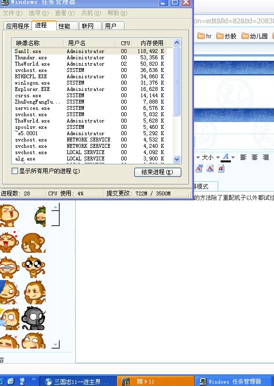 各位大哥,是到了那一步就彻底死机,你们说的方法除了重配机子以外都试过了,还有什么高见啊,cpu使用率不超过10,内存使用118,492,我现在不按三国志11程序,不死机,一按的话出现主界面,就死机了。