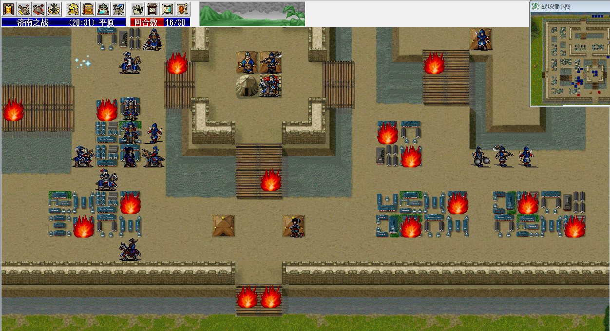 c.击杀苏凤后,老单、管毅、魏征和小柳的站位参考第9回合,这样的话,高明高亮兄弟就不会烧到百姓(给百姓加血很费补给),只会烧管毅、老单或小柳;如果运气好,第7回合开始能SL出雨天(几率很低),那再好不过,徐世芳出现后对老齐的策略伤害也会降低很多(毕竟毒有一定几率不掉血)。